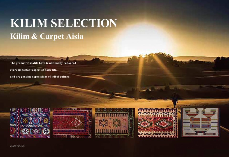 キリム(平織り)の敷物は、毛足がないため絨毯よりも軽く、折りたたみができ、お掃除も簡単です。5000年の歴史を持ち、伝承されてきた個性的なデザインは、画家のマチスなど多くのファンを集め「床に敷く絵画」と呼ばれています。政情不安の続く危険地帯を駆け巡り、集められたキリムをぜひご覧ください。